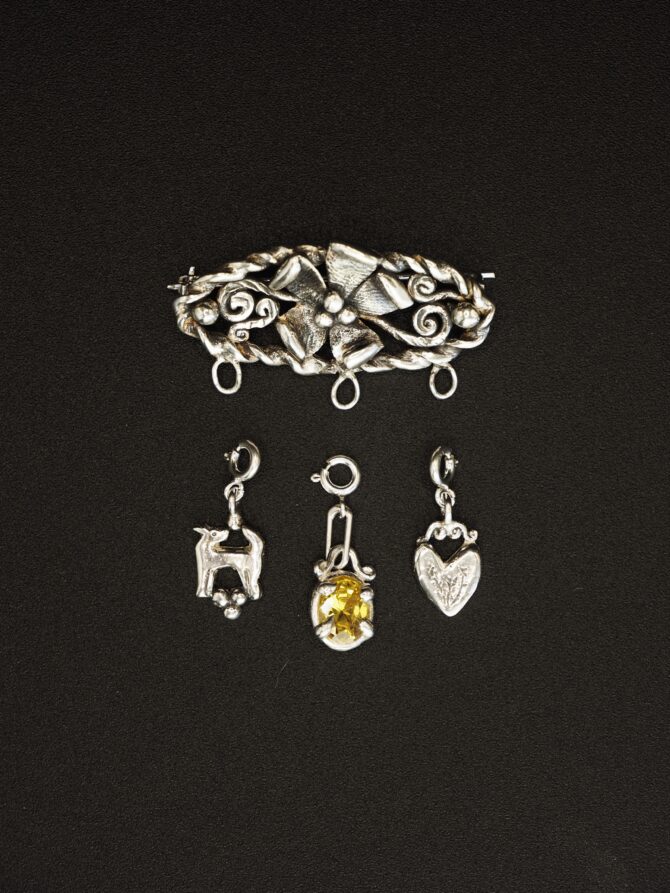 La colección Amuleto ha sido creada para acompañarnos, recordarnos o protegernos. Llevar un amuleto de aquello que perseguimos, recordarnos a nosotros mismo cual es nuestra meta, nuestros deseos o valores. Portar el recuerdo de alguien a quien queremos. También está hecha para jugar con ella, hacer cambios, añadir o quitar estos amuletos a tu antojo.