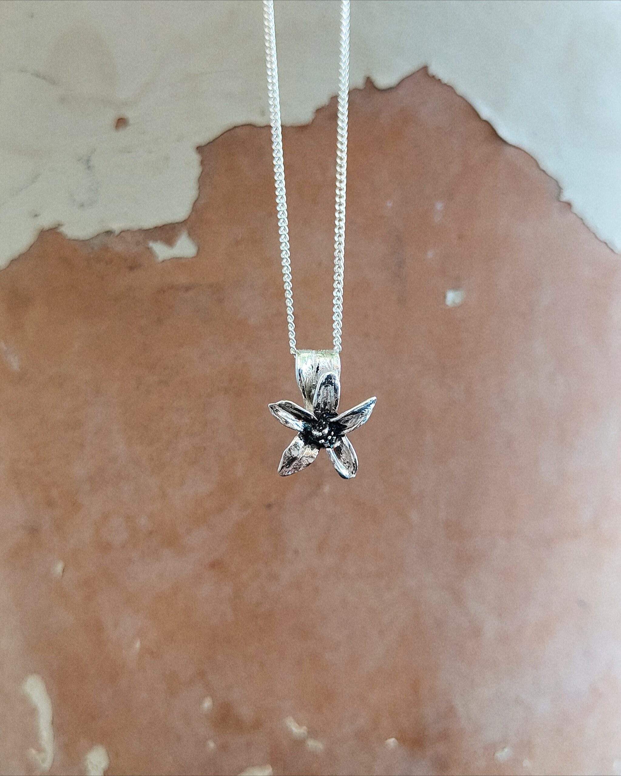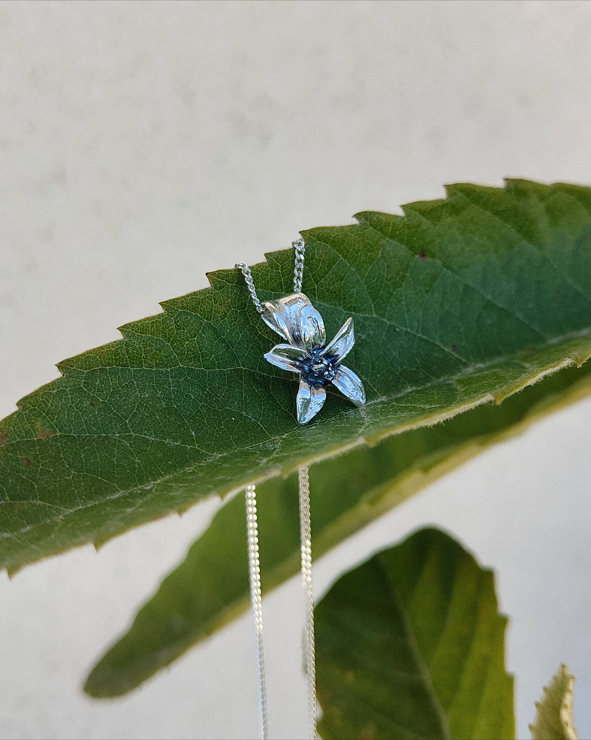 Hecho en plata de ley y acompañado de una cadena, también de plata, de 45 cm de largura.